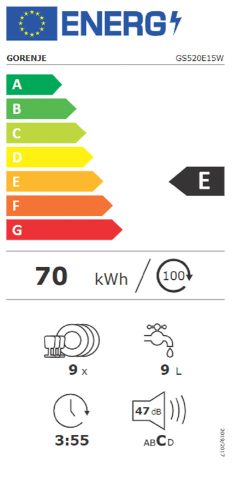 Gorenje GS520E15W keskeny mosogatógép, fehér, 9 teríték, 47 dB(A), gyors program, intenzív program